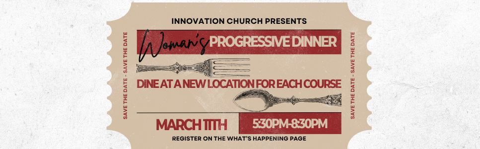 Please fill out this form and click submiLadies of Innovation Church, it’s time to hit the road for our Women’s Progressive Dinner! If you’re looking to deepen friendships and meet new faces, this is the night for you. We’re traveling together across our community to share a meal, one house at a time!